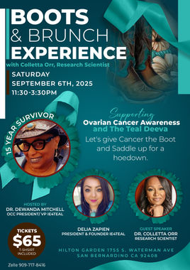 Pink & Teal Experience where guest speaker will speak candidly and compassionately and breast and ovarian cancers and the impact it has had on their lives. This event will give everyone the knowledge that is so very necessary to reduce the risk of developing these diseases and that it also will empower us with the strength needed to go through this journey. Our panel of speakers will include survivors, healthcare professionals and research scientists. Cancer affects each person in a unique way, but this yearly gathering guarantees that all attendees depart feeling motivated and optimistic, as "Cancer Doesn't Always Win!"